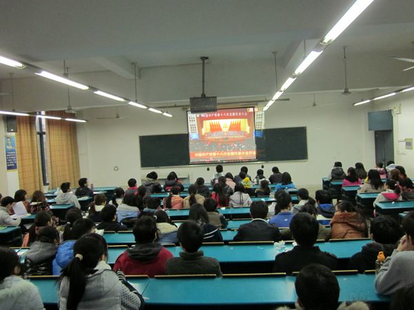 中国共产党第十八次全国代表大会,是在我国进入全面建成小康社会决定性阶段召开的一次十分重要的大会。为了让广大同学更好地学习和领会十八大会议精神,依据校发〔2012〕71号文件,连日来,药学系学生第一党支部开展了以“学习领悟十八大精神实现新跨越”为主题的丰富多彩的系列活动。 一、集中观看“十八大”开幕式直播 11月8日上午9点,药学系学生第一党支部全体党员在西104教室观看十八大开幕实况转播,整个观看过程同学们都非常投入,当全国人大常委会委员长吴邦国宣布会议正式开始后,同学们跟随人大代表一起全体起立共唱国歌和向革命先烈默哀,表达了对党的崇敬,对国家必将更加繁荣昌盛的信心和对革命先烈的最崇高的敬意,之后认真听取了胡锦涛主席在会上的发言。 会议结束后同学们纷纷表示,一定会继续认真学习十八大精神,从自身做起,努力学习,共同进步,一同创造更加美好的未来,为祖国建设贡献出自己的一份力量。
