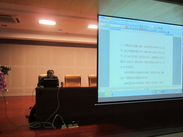 二、举办“中国的国际地位”专题讲座 11月13日晚上,皖南医学院原副院长黄金余应邀给该系学生第三党支部作“中国的国际地位”专题讲座。黄老师用铿锵有力的语言、精彩生动的讲解、开阔的历史视野、精确的数字对比,从六个方面详尽阐述了我国改革开放至今取得的巨大成就,说明中国在国际地位的不断提高,让同学们真实地感受到了随着中国政治、经济、文化的进步和发展,中国在国际社会的综合影响力日益强大,在世界的话语主导权不断增强。黄老师强调:中国的发展离不开世界,世界的繁荣也离不开中国,展望未来,中国人民将继续同各国人民一道,为实现人类的美好理想而不懈努力。通过这次讲座,同学们对我国的国际地位有了更深刻的认识,对祖国的伟大成就倍感自豪,纷纷表示要努力学习知识文化,将来好为国家的建设贡献一份力量。