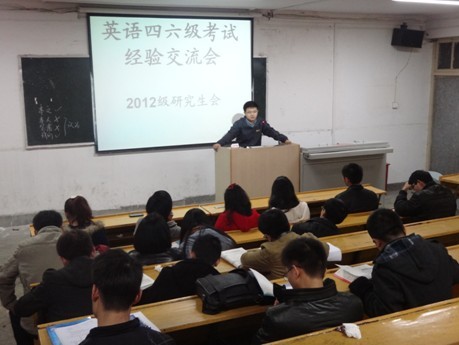 为使同学们在即将开始的大学英语四六级考试取得理想的成绩,11月25日晚,研究生部在老校区3101教室举办了一场英语四六级考试经验交流会。交流会由2012级研究生辅导员水寅萍主持。