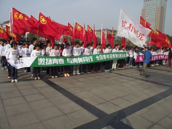 2014年,第二届青年奥林匹克运动会将在我国南京举办,作为全国各地喜迎青奥会的系列活动,全国青年迎青奥长跑活动起跑仪式(芜湖)站活动于24日上午在市奥林匹克公园广场隆重举行,来自我校校学生会,各系部学生会,青年志愿者协会的共400名同学参加仪式。