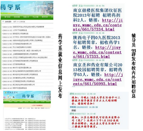 为切实贯彻落实《2013年全国普通高校毕业生就业工作视频会议》的精神,在学校的大力支持和药学系的精心组织和安排下,药学系2013届毕业生就业工作稳步开展,从11月14日至11月26日共举办了9场专场招聘会,目前已有44人签订了三方协议,多人与用人单位达成就业意向,2013届毕业生就业工作初见成效。