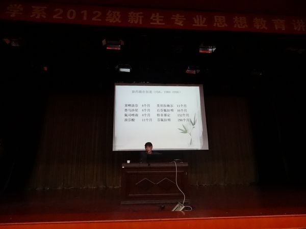 为进一步加强新生的专业思想教育,激发学习热情,培养专业思维能力,坚定对未来的信心,2012年12月19日下午在校大学生活动中心,药学系邀请了宋建国教授为2012级新生进行了专题讲座。 宋建国教授以“药物、药学、药师”为主题,从神农尝百草的故事谈起,一直讲解到药学专业的发展史以及中华民族对药物发展的作用,乃至近现代药学飞速发展等方面,使新生对药学专业有了一个较为全面的了解。讲座中宋教授对药师职业进行了重点阐述,指出,药师是生命的卫士,一名合格的、优秀的药师,应该秉承“有效即好药、药物即毒物”的理念,做到正确选药、合理用药、辩证用药,树立良好的职业道德。宋教授在讲述过程中旁征博引,穿插各类专业知识与相关经历,深入的剖析让刚刚步入药学系的学生们对药学专业有了更加深刻的认识。最后,宋教授对药学各专业的现状进行分析,为不同专业的同学指明了就业方向,指出同学们使命神圣,任重道远,并以“机遇只眷顾那些有准备的人”赠与在座所有的同学。 宋教授深入浅出地引导,让新生们在轻松的氛围中,感受到了药学专业的发展潜质,更坚定了对药学学习的信心。整场讲座中,同学们认真听讲,积极参与互动,使同学们在爱上各自专业的同时意识到:只有努力提高自己的各方面素质,才能在未来的竞争中立于不败之地。