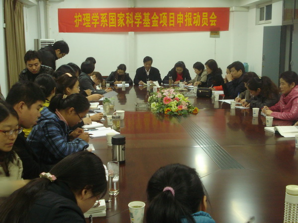 11月16日下午,护理学系2013年度国家科学基金项目申报动员会在老校区会议室召开。护理学系党总支书记刘群、副主任章泾萍、李远珍、各教研室主任、秘书及部分专兼职教师、辅导员参加了会议。刘群书记主持会议。