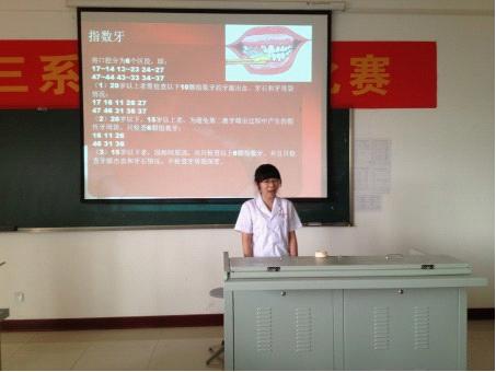 方媛老师在进行试讲 口腔医学实验中心在指导新教师加强自身业务素质提高的同时,要求他们注重思想品德的修养,为人师表,积极参加学校和系部的各项活动。 (刘文靖/文、摄 唐传莉、张卉/审) |
