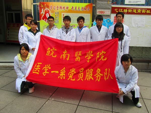 为了迎接党的十八大胜利召开,将“保持党的纯洁性”主题实践教育活动在行动中强化,10月25日,医学一系2009级党员服务队走进芜湖市南街社区,将青年党员的热情与奉献留给了社区群众。
