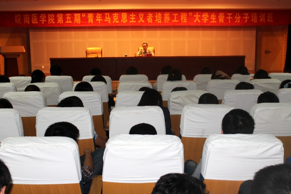 | 2012年9月20日,我校第五期“青年马克思主义者培养工程”大学生骨干分子培训班第四次理论授课在图书馆三楼学术报告厅举行,校关工委常务副主任曹士珍同志应邀作了题为“坚持正确的理想信念,做新时期合格的大学生”讲座。讲座由校团委书记李国柱主持。