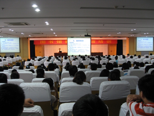 为了使2012级新生尽快了解图书馆,充分利用图书馆资源,使图书馆真正成为大学生学习的第二课堂,在学生处、后勤处、各系部的大力支持和积极配合下,图书馆于2012年9月12日至19日为各系部新生共举办了13场次入馆培训。