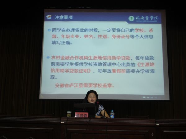 会 场 校学生处副处长崔晓霞同志结合我校实际情况,向全体新生详细介绍了国家资助政策、学校绿色通道的办理、家庭经济困难认定以及国家和学校各类奖学金的评定等方面的政策,表示学校将认真贯彻落实各项资助政策,帮助困难学生顺利完成学业。她还向大家解读了大学生基本医疗保险方面的政策,详细说明了医疗保险的报销范围,报销比例、报销流程等内容。