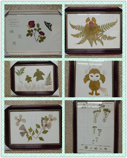 三、实施标本制作 落实大赛流程 8月5日至30日,系部魏远娜、张怡等八名同学经过一系列压制烘干、定型固定等工作,终于完成了近30幅动植物标本的制作。同学们首先根据已有的材料对作品进行构思和设计,然后充分利用植物固有的形态、性质,对植物进一步干燥、修剪、美化,最后将处理过的标本黏贴在制作标本专用的台纸上。标本制作期间,同学们向老师集中反映了各种技术上的问题,如部分植物难以压制干燥、如何保持植物花朵和叶片的颜色等。经过反复尝试和摸索,很多问题在老师的指导和同学的努力下都得到了解决,同学们也纷纷表示对参加本次标本大赛充满信心。