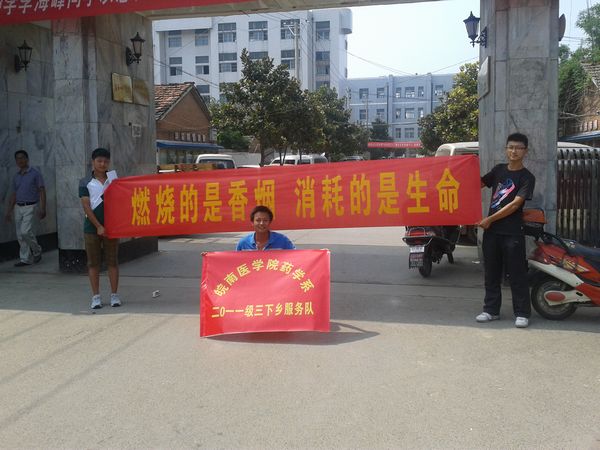 | 在社会实践中创先争优,在志愿者活动中服务群众。近期,药学系2011级同学在家乡亳州市利辛县开展了以“珍爱生命 杜绝香烟”为主题的暑期社会实践活动,号召人们共同构建无烟社会。 活动当天,同学们冒着酷暑,早早的来到县城人流较多的向阳街道上,向过往的路人发放宣传单,积极介绍吸烟和二手烟的危害,警示广大市民吸烟“燃烧的是香烟,消耗的是生命”,并提出一些戒烟的有效措施。此外,同学们还向大家明确指出了国家要求禁烟的各类场所,号召全体市民应摒弃不良习惯,自觉遵守公共场所不准吸烟的规定,共同积极抵制二手烟。 此次活动受到了市民群众的广泛关注,进一步增强了人们的控烟、戒烟意识,吸烟市民纷纷表示,以后尽量少吸烟,不在公共场所吸烟。而同学们积极投身实践、服务社会的行为,也充分诠释了新时代的雷锋精神,取得了良好的社会效果。