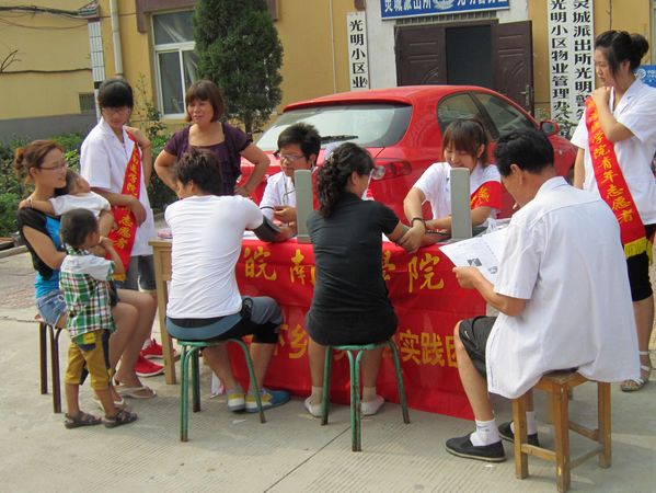 实践活动中,队员们积极地为居民测量血压、血糖,耐心地为居民讲解夏季常见病的症状及预防知识等,受到广大居民的高度赞扬。