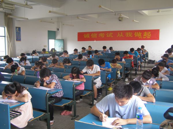 为进一步建立良好的学风、考风,形成诚信的氛围,在期末考试来临之际,药学系向各班级发出了诚信考试倡议,同学们踊跃报名。经系部审核,选定2011级三个班级参加本次无人监考。 在考试之前,申请无人监考的三个班级分别召开主题班会,积极宣传诚信考试的意义,并举行了“诚信考试 从我做起”签名活动。6月25日下午,药学系2011级的100多名新生进行了首场“诚信考试 从我做起”无人监考考试。在无人监考考场中,学生们自觉地答卷、交卷,秩序井然。整场考试结束后,未发现任何考场违纪现象,实现了考试“零作弊”。 本次活动的开展不仅是检验学生一学期来的学习情况及老师的教学成果,而且为学生搭建了一个展示诚信的平台,让学生在这种氛围中完成对自己的知识和人格的双重考核。