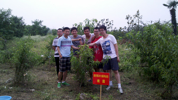 6月16日下午,药学系2012届毕业班辅导员带领部分毕业生来到他们三年前亲手种下的桃树前,利用离校前的最后时光,为桃树除草、松土、浇水。虽然烈日当头,师生们依然干得热火朝天,看着三年前自己亲手种下的小树苗已然长成了一片生机勃勃的小桃园,师生们的脸上都洋溢着幸福的笑容。