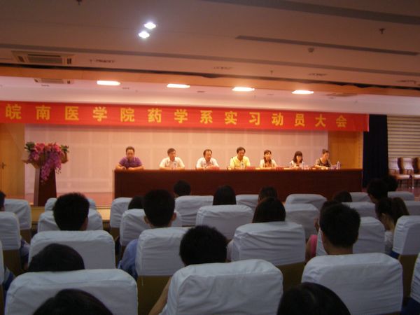 6月18日,药学系在图书馆信息楼学术报告厅召开2009级药学专业、制药工程专业学生实习动员大会。系主任吴少云,系党总支副书记李康才、赵梅,系秘书颜亮,09级辅导员马金珠、刘瑾、王会和即将奔赴实习单位2009级药学专业、制药工程专业350位同学参加了大会。会议由颜亮老师主持。