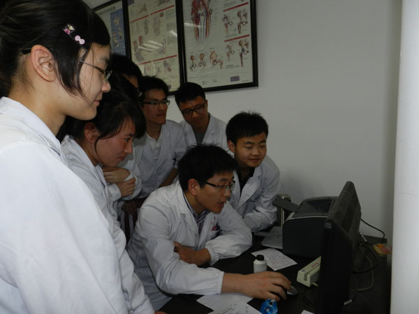 临床教学部高度重视实验课的教学,并结合医学教育形势,大刀阔斧地对实验课的教学模式进行改革,将以往的集中见习分解为公共课、专业科深入拓展(病例教学及讨论)及临床见习三大部分。 除改革教学模式外,临床教学部还在管理模式上进行了新的探索,采取“课前动员、课中监督、课后反馈”的形式,提高实验课教学效果。课前动员:今年年初,临床教学部主任陈斌主持召开了内、外科学实验课教学改革研讨会,就如何上好“病例讨论课”、如何激发学生学习兴趣、培养学生的临床思维能力等方面提出了要求。会议确定了“临床实践课”的教学内容为:学生参与晨会交班、工作查房或教学查房,举办专科小讲座,让学生了解新病人的处置过程等。会后,内、外科又分别召开了实验课带教老师专门会议,要求教师明确教学内容,端正教学态度,严肃教学纪律,提高教学水平。课中监督:每天由临床教学部组织专人监督内、外科学实验课教学情况,及时处理存在的问题。课后反馈:每天把前一天检查的情况通过短信的形式反馈给每一位带教老师,表扬让学生满意的带教老师,提醒在带教过程中出现问题的老师,及时改进。