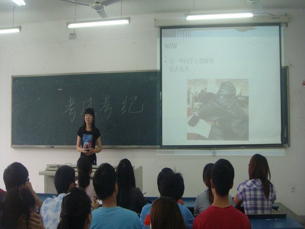 为了弘扬优良学风、严肃考风考纪,加强该系学风建设,使诚信的观念深入人心,日前,人文与管理系在全系范围内开展“端学风、学以勤、考以信”学风建设活动。此次主题教育活动,旨在加强学生的诚信教育和考风考纪教育。 一、自下而上,发挥学生会的督导作用 5月29日,人文与管理系团委、学生会组织的学生“学风监督”委员会对人文与管理系11级和10级同学进行抽查点到。活动由系学习部通过随机抽取名单的方式实施,在各带课老师的支持下,学习部干事协作监督,活动顺利开展。本次学风督察工作,使该系更好地了解期末课堂的学风情况,同时进一步强化同学们自我管理意识。 二、互帮互助,高低年级相互监督,创新学风建设新举措 人文与管理系采取年级之间相互督促的方法,每个年级组成年级学风督查组,深入课堂、宿舍对其他年级上课、复习迎考情况进行抽查,再通报给年级辅导员,促进年级之间相互监督,互帮互助,互相学习。 三、自上而下,主题班会为诚信考试提供良好保障 在临近期末考试之际,该系在校的两个年级分别在5月23日,6月3日下午召开了以“诚信考试”为主题的班会。辅导员就同学们复习迎考中遇到的困难,介绍了科学的应对方法,针对落后的学生,采取一帮一先进帮后进的方式。班会中还运用视频、歌曲、演讲等方式让学生们意识到了“诚信”品质的重要性。每个学生庄严承诺:诚信考试,绝不作弊。并签下诚信考试承诺书。