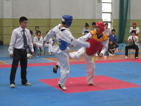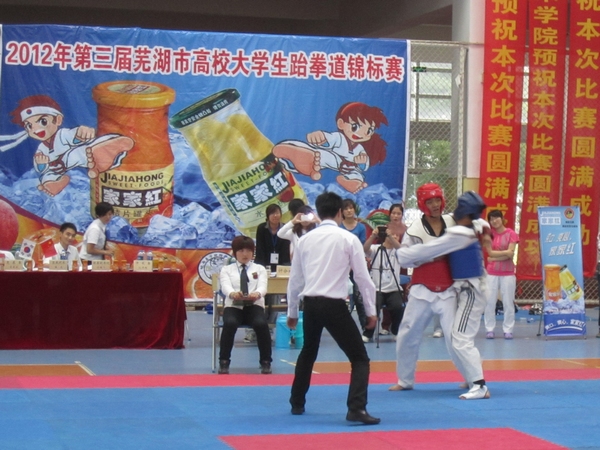 5月19日,芜湖市第三届高校大学生跆拳道锦标赛在我校风雨操场举行,我校和安徽师范大学、安徽工程大学、安徽机电职业技术学院、安徽商贸职业技术学院等五所芜湖高校跆拳道协会成员单位参加比赛,芜湖皇家跆拳道馆专业人员担任本次比赛的裁判。