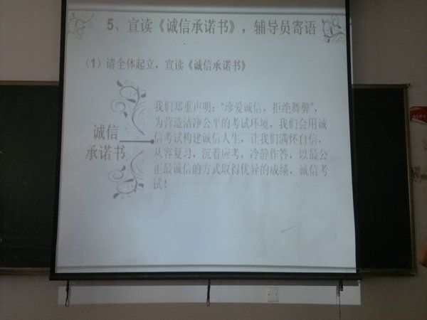 会上,同学们还就大学生活这一话题进行了互动交流,现场气氛活跃,掌声不断。一段关于大学生活的视频将班会推向了高潮,同学们还宣读了《诚信承诺书》,并郑重地在承诺书上签下自己的姓名。