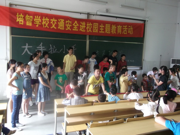 5月16日,同学们还来到芜湖市培智学校开展了“大手牵小手,共走阳光路”的爱心助残活动。首先同学们为这些孩子表演了精彩的节目,随后大家还以游戏的方式向孩子们宣传了健康小常识,赢得了孩子们阵阵掌声。最后同学们将亲手折的风筝、爱心等送给他们留作纪念。通过深入的交流,大家也被这些孩子身残志坚的精神深深感动。
