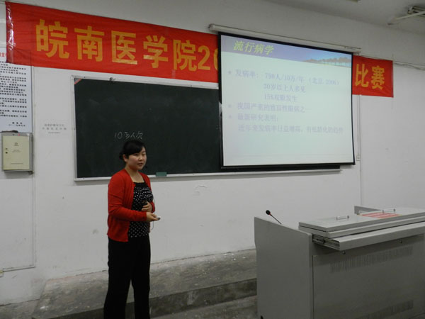 为进一步提高临床教师的教学水平和教学能力,并给教师们提供一个展示自我和相互交流的平台,2012年5月8日―9日,临床教学部举办了2012年中青年教师讲课比赛。来自弋矶山医院20个教研室的40位选手参加了比赛。为确保比赛的公平,并能对参赛教师起到指导作用,评委由校教学督导组与各教研室主任组成。评委们从教学内容、教学态度、教学方法、教学效果几方面进行了细致、认真地评判,并对选手教案的准备、课件的制作、教态的注意点等方面进行了详细、精彩的点评,最后评选出十名优胜选手参加校级中青年教师讲课比赛。