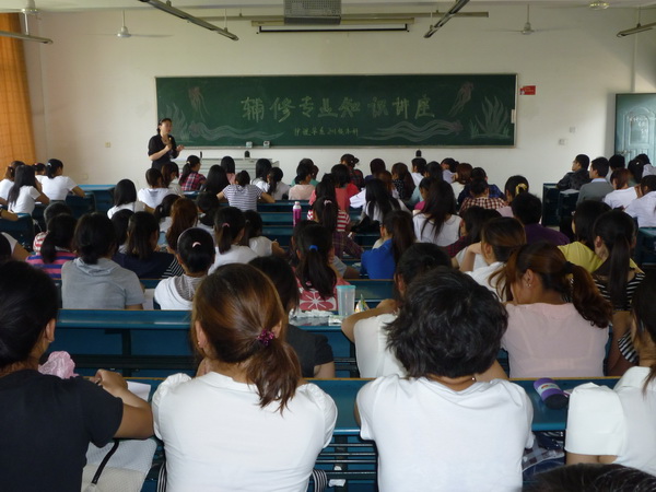 为加深同学们对辅修专业的了解,帮助同学正确选择辅修专业,5月11日中午,护理学系副主任李远珍在西教303教室为护理学系2011级本科同学作了一次指导讲座。