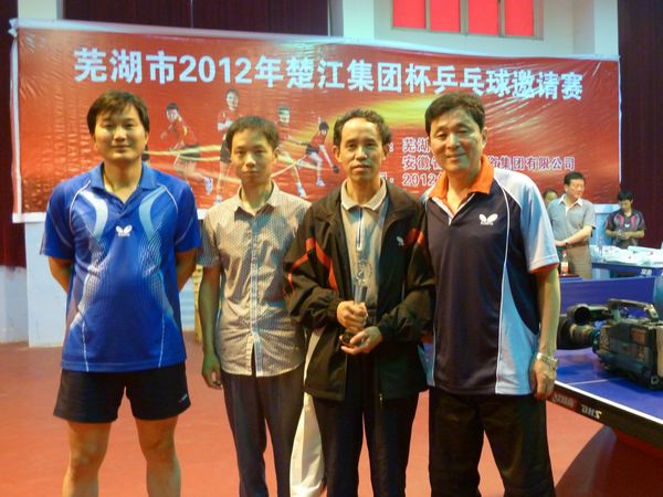 由芜湖市乒乓球协会组织的楚江杯乒乓球邀请赛,于5月12日至13日在狮子山小学乒乓球俱乐部举行。 本次比赛是由全市乒乓球协会会员单位组队,共有22支代表队100多名运动员参加,我校工会由周强、钱门祥、朱正才、吴明四位同志组成代表队,代表皖南医学院参加此次比赛。 校纪委书记李刚亲临现场为队员鼓劲,皖医代表队经过二天的奋战,队员们不畏强手,奋力拼搏,最终取得了第三名的好成绩。