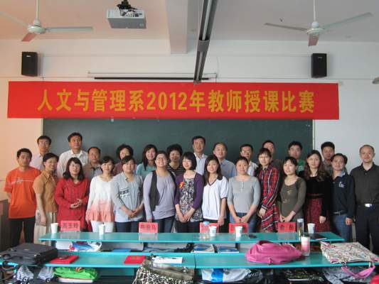 为了进一步加强中青年教师的队伍建设,不断提高中青年教师的业务素质和教学水平,5月5日,人文与管理系在2号教学楼307教室举行了2012年度中青年教师讲课比赛。系党总支书记阮笑芳、主任胡鸿、副书记刘华、副主任王军和来自各教研室的8位选手参加了比赛,此外系全体专兼职教师观摩了此次比赛。心理教研室主任刘新民教授、生理与神经生物学教研室主任汪萌芽教授、法学教研室主任高玉玲副教授、医疗保险教研室主任俞彤副教授以及思想政治部陶庭马副教授担任评委。