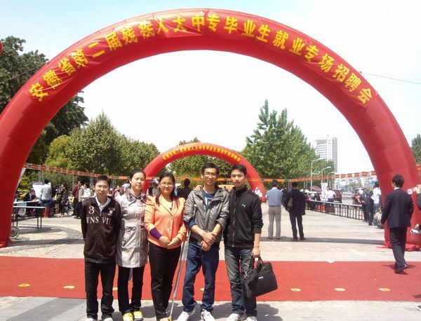 4月26日上午,由省残联、省教育厅联合举办的安徽省第二届残疾人大中专毕业生招聘会在合肥市杏花公园广场举行,共有56家单位参会,提供就业岗位500多个。我校组织3名残疾毕业生参加了此次招聘会,通过双向选择和现场推荐,2名同学与用人单位达成就业意向,同学们“乐观向上、自立自强”的精神状态受到用人单位的称赞。
