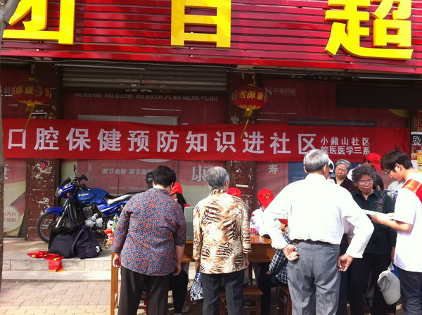 为弘扬雷锋精神,医学三系团委、学生会于4月28日下午在小赭山社区开展了“口腔保健预防知识进社区”活动。