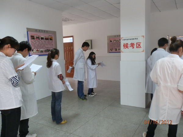 第三站 4月13日,该系副主任王云副教授召集领导小组成员,研究制定2007级口腔专业毕业生技能考核的具体流程,系教研秘书张越老师就有关考核具体事项作了说明,各考核分站负责人就考核试题与材料准备做出部署。4月16日至20日,该系组织实施2012届口腔专业毕业生技能考核。今年该系考核内容由去年每名学生考核一站,增加为每名考生接受完整的三站考核。同时鉴于2012届口腔专业毕业生较去年增加了50人。在短短一周内执行三站式考核任务,工作量较以往成倍增加,任务较为艰巨。该系的每位考官克服实际困难,合理组织调度考核程序,圆满完成150名2012届口腔专业毕业生考核工作。