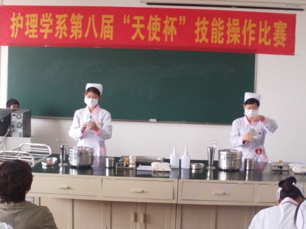 为进一步促进学风建设,强化学生实践能力的培养。2012年4月16日下午,护理学系第八届“天使杯”学生护理操作技能比赛在南校区3号实验楼示教室举行。系党总支副书记王颖、基础护理教研室主任肖国华亲临比赛现场指导;基础护理教研室沈学清、张贤萍、刘彦、吴向莉、都芳及四名学生代表担任评委,护理学系2010级专科学生现场观摩了此次比赛。