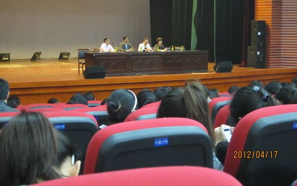 2012年4月17日上午,护理学系在大学生活动中心召开实习动员大会,系党政领导、辅导员和护理学系2010级专科全体同学参加会议,会议由辅导员汪峰老师主持。