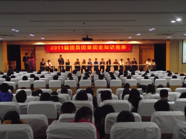 为进一步增强团员意识,引导我校团员青年学团史、知团情,坚定中国特色社会主义理想信念,以实际行动继承和发扬优良传统,更好地做好党的助手和后备军。4月7日,我校“2011级团员团章团史知识竞赛”决赛在图书馆三楼报告厅成功举办。