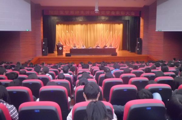 4月11日晚,预防医学系在校大学生活动中心隆重举行2010-2011学年度评优评先与奖学金表彰大会。学生处处长李军华、教务处副处长杜少陵、团委副书记李娜以及预防医学系全系师生参加了大会。大会由预防医学系副主任文育锋主持。