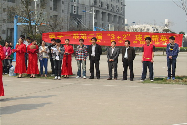 为丰富学生课余生活,促进学生综合素质的发展,医学一系团委、学生会积极组织举办第二届“3+2球季精英赛”,此次比赛共报括足球、篮球、排球和羽毛球、乒乓球五个项目,全系在校生积极报名。4月7日上午,医学一系第二届“3+2球季精英赛”在校篮球场隆重开幕。开幕式由系学生会主席顾子峰主持,医学一系党总支副书记王金权、系团委书记吴金庭、2011级团总支书记王平以及系团委和各年级学生会主席出席了此次开幕式。