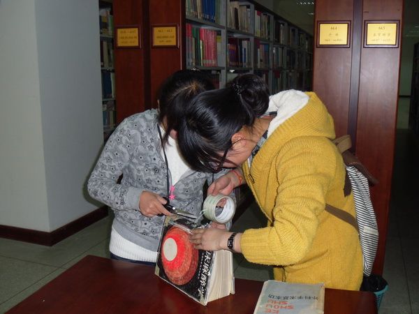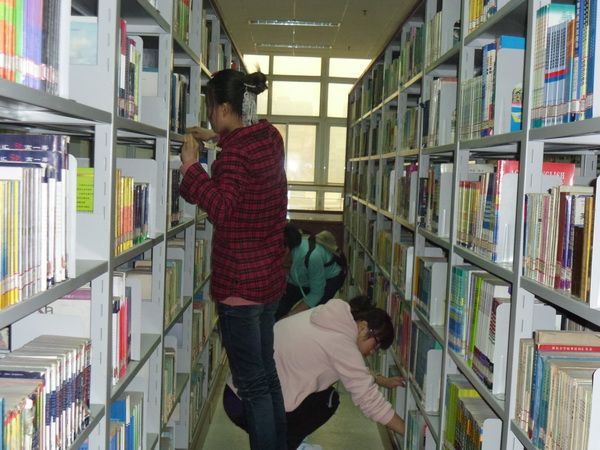 3月30日上午,护理学系2011级本科一班全体同学践行雷锋精神,在图书馆第三借阅室对2005年以前入库的图书进行修补,并对书架进行擦拭。