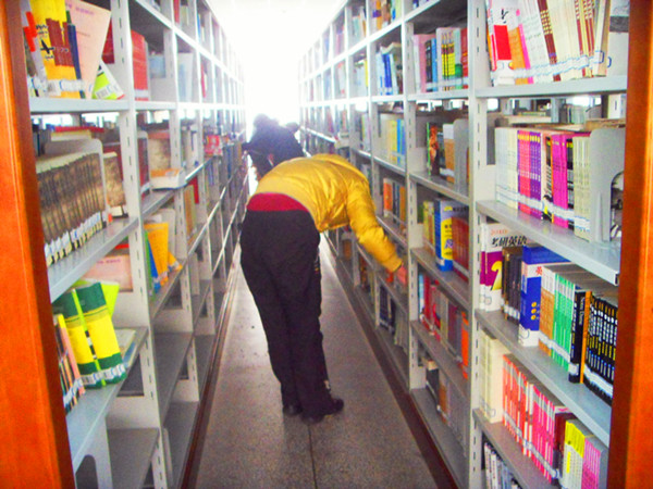 四、义务打扫图书馆,亮化学习环境 为弘扬雷锋精神,亮化图书馆的学习环境,药学系2009级团总支学生会宣传部联合学习部在图书馆三楼进行了义务打扫活动。“一滴水只有放进大海里才永远不会干涸,一个人只有当他把自己和集体事业融合在一起的时候才能最有力量。”雷锋如是说道。同学们把底层长期没有存放书籍的空书架上的灰尘打扫干净,并且把书架上的垃圾也一并清理出来,最后把书籍也整理整齐。通过这次活动,同学们纷纷表示要学习雷锋精神,提高素质,将来成长为具有高度社会责任感的社会主义事业建设者和可靠接班人。