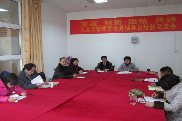 3月15日下午,人文与管理系在系会议室召开党总支中心组扩大学习第一次会议,系党总支书记阮笑芳、主任胡鸿、副书记刘华、副主任王军、总支委员汪萌芽和各党支部书记参加了本次会议,会议由阮笑芳书记主持。
