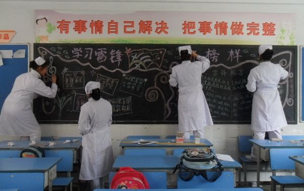 二、宣传雷锋精神,“学雷锋黑板报”进小学。志愿者来到鲁港小学为教室设计“学雷锋黑板报”,以黑板报为载体宣传雷锋精神,让小朋友们了解雷锋、学习雷锋、感悟雷锋、争做雷锋传人,让雷锋精神伴随他们健康快乐成长。