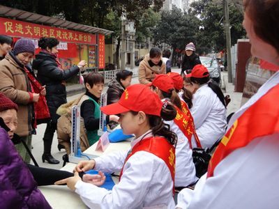 门急诊团支部的青年志愿者们来到了红梅社区,为社区居民免费测血压,提供健康咨询,还向居民发放一些健康知识资料并予以讲解。活动现场气氛热烈。得知该社区有一位居民因身患疾病、双目失明无法来到现场,附院青年志愿者便主动前往他的家里提供上门服务,受到广大居民的一致好评。