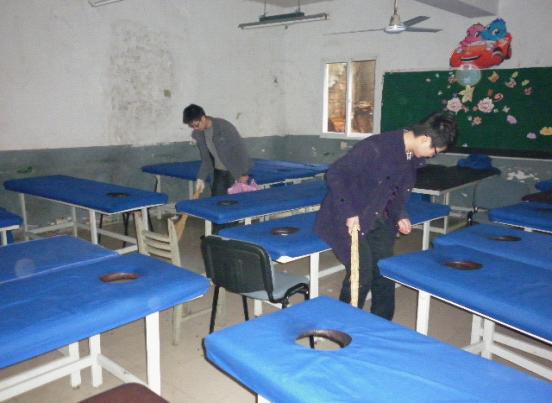 在与盲人按摩学校取得联系并获得同意的情况下,同学们携带相应工具,冒雨前往盲人按摩学校。活动过程中同学们相互协作,相互配合,不怕辛苦。通过此次活动,同学们在理解雷锋精神的同时也要体会到盲人学生的自强不息,身残志坚精神。