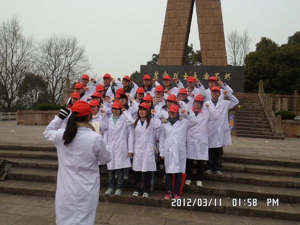 为积极响应团委学习雷锋的号召,预防医学系2011级组建了“学雷锋、争做螺丝钉” 小分队于3月11日奔赴神山烈士陵园开展“学雷锋、争做螺丝钉”志愿者活动。 身着整齐的白大褂,头戴小红帽的同学们在烈士陵园向烈士赠送花篮,并郑重宣誓,立志要将雷锋精神发扬光大,报效祖国。随后,学生们参观并清扫了烈士陵园,以实际行动宣扬雷锋精神,受到过往群众的赞扬。