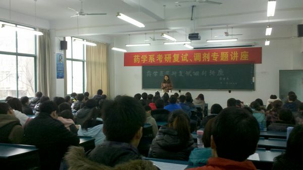 为了给2012届考研毕业生答疑解惑,解读考研复试、调剂政策,3月9日下午,药学系在1-201教室举办了考研复试调剂讲座。讲座由药学系党总支副书记李康才同志主持,我校研究生部副主任郑兰荣同志主讲。
