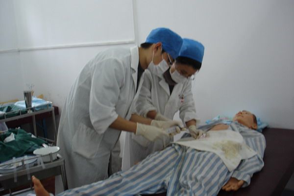 学生在刻苦训练 之后,韩军等一行与临床带教老师进行了交流,感谢他们为培养学生所付出的努力。8位同学对学校老师们的到来感到非常高兴,表示感谢学校老师们的关心,将竭尽所能,认真向带教老师学习,不断提高临床基本技能,为医学一系、为学校争光。