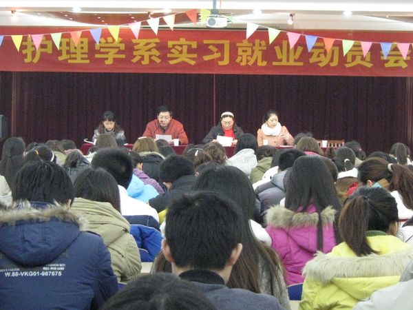 根据系里安排,12月13日上午,护理学系在北校区7楼报告厅召开2008级本科实习就业动员大会。系副主任李远珍、实习秘书艾东、2008级本科辅导员王亚娟和李筱铨老师及2008级本科全体同学参加了会议。会议由艾东老师主持。
