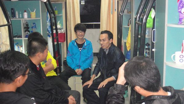 走进宿舍 11月30日晚,由系副主任、辅导员及教师组成的走访小组,在系副主任文育锋的带领下,分别深入男女生宿舍开展走访。在走访中,老师们详细询问了同学们在出行、住宿、生活等方面的情况,同时就学习、生活方面的等问题与同学们进行了交流,了解同学们的思想动态。特别走访了几位贫困学生,关心他们目前的生活状态,得知他们本学期的助学金已发放到位。老师们还叮嘱学生有什么困难可以通过辅导员向系部反映。同学们对老师们的到来表现得非常兴奋,并就自己的学习和生活及思想状况谈了很多感想。