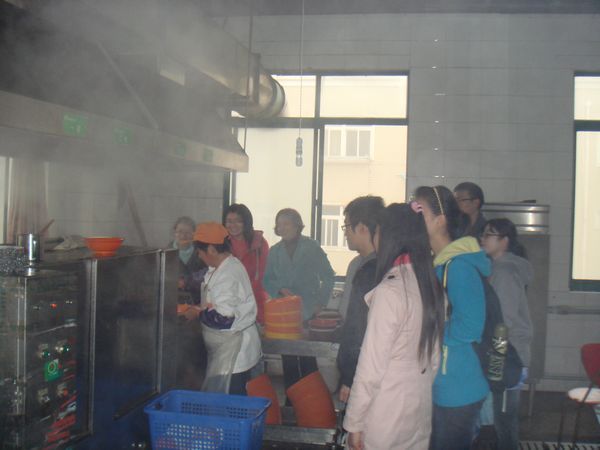 走进食堂 11月29日中午,由系党总支书记、学生党支部书、辅导员和部分学生党员和学生代表组成的走访小组,在系党总支书记朱丹的带领下,到餐饮中心二楼进行了走访,了解学生就餐情况,开展食品卫生专项调研。 走访小组一行通过食堂工作人员陪同下,对食堂的购菜途径与价格、后厨布局及卫生状况、工作人员健康状况、饭菜留样、碗筷的清洗消毒、仓库必备物品及储备等情况做了调研;利用学生用餐时间,与同学们就饭菜质量及价格、就餐环境、伙食费用等方面进行了交流。 此次活动得到了后勤管理处的全力配合,不仅拉近了办伙者与就餐者之间的距离,同时也对学生在餐饮服务上的需求有了更进一步了解。