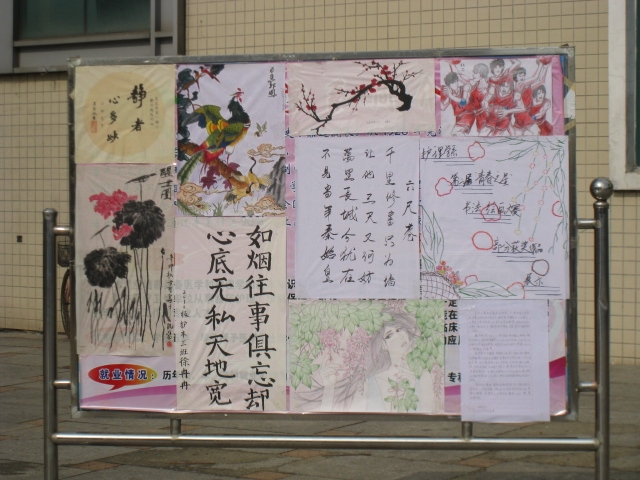 为丰富大学生活,活跃校园文化,展现护理学子对艺术的热爱,近期护理学系团委举办了第二届“青春之星”书法绘画比赛。 活动共收到来自各个年级的一百余幅作品,其中有毛笔字、硬笔字、国画、动漫作品、水粉画、素描等,千姿百态、各具特色,充分展现出同学们精湛的艺术功底和对美好生活的追求。经过评选,最终评出一等奖六幅作品,二等奖八幅作品,三等奖十一幅作品。12月8日中午,护理学系团委将部分获奖作品在新老食堂门口展览,精美的作品引得来往师生驻足观赏。