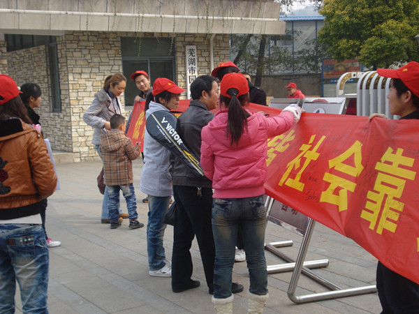 为增强市民们的低碳环保意识,深化低碳环保理念,12月4日上午,药学系学生第一党支部在赭山公园举办了 “低碳环保在行动、和谐社会靠大家”为主题的环保宣传活动。 活动现场