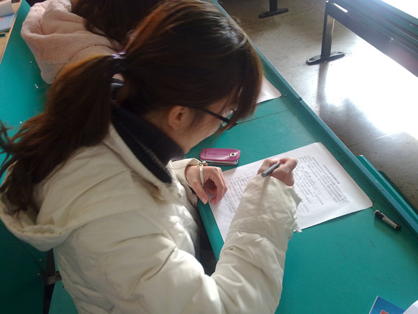 同学们正在认真填写问卷